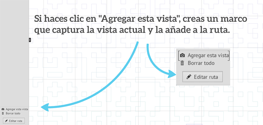 - También puedes agregar marcos invisibles si haces clic en 'Agregar esta vista' al editar la ruta del prezi. Entonces se generará un marco invisible basado en la vista actual que muestra la pantalla y se agregará un paso más a la ruta.