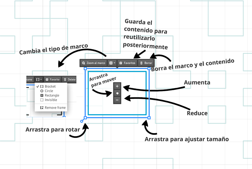 - Mantén presionada la tecla ALT mientras arrastras o haces clic en un marco para moverlo, escalarlo o rotarlo de manera independiente.